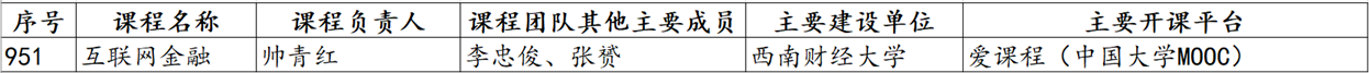 近日,教育部公示了第二批国家级一流本科课程名单,禁漫帅青红教授团队的《互联网金融》入选第二批国家级线上一流本科课程。