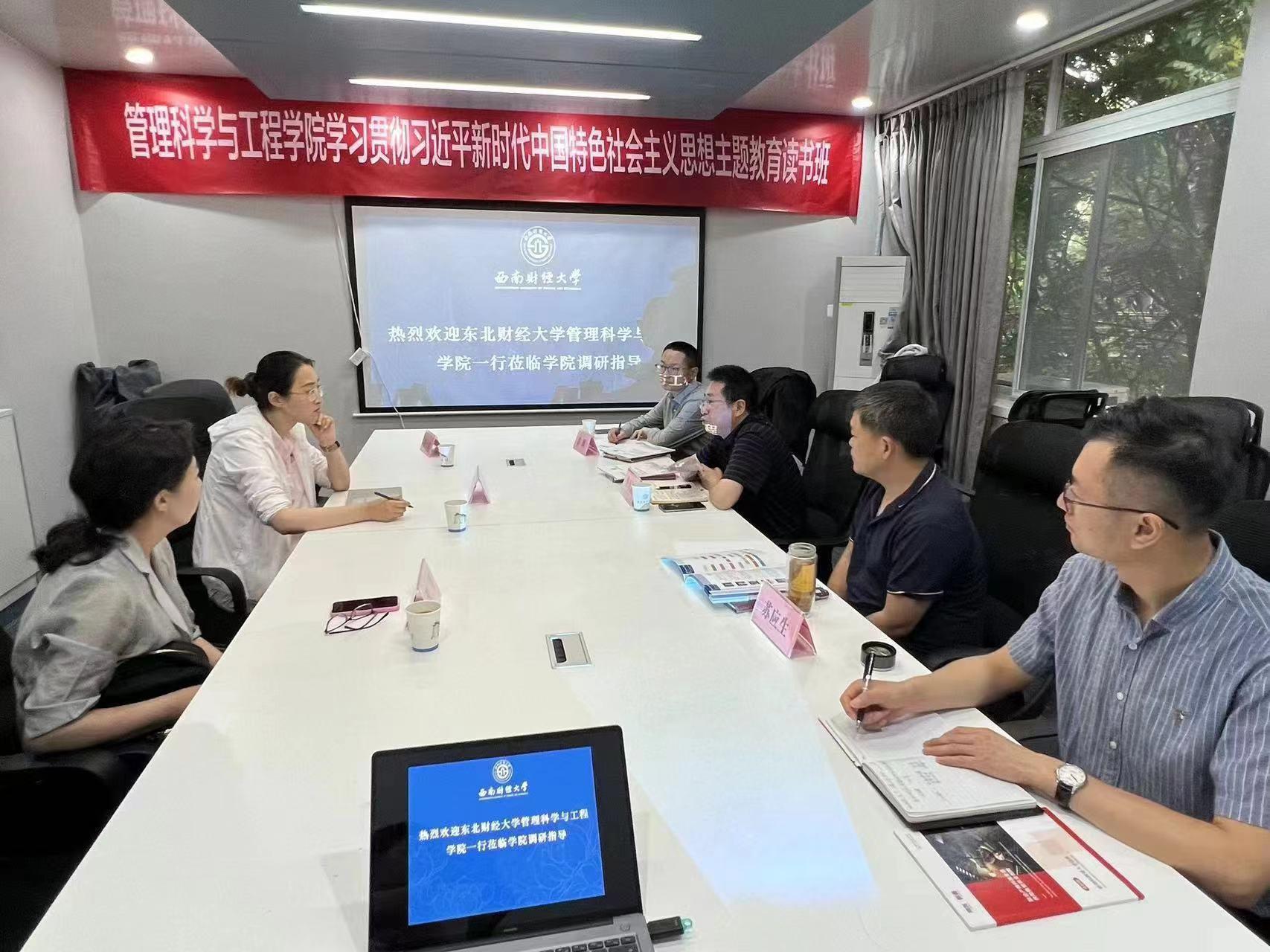 副院长田甜一行来禁漫调研交流,禁漫院长鲁万波、副院长肖辉、管理科学与工程系主任苏应生等参加了调研交流会。双方以深入开展学习贯彻习近平新时代中国特色社会主义思想主题教育为契机,认真贯彻落实《关于在全党大兴调查研究的工作方案》,围绕课程思政、学科建设、党建与业务融合发展等问题展开深入研讨交流。