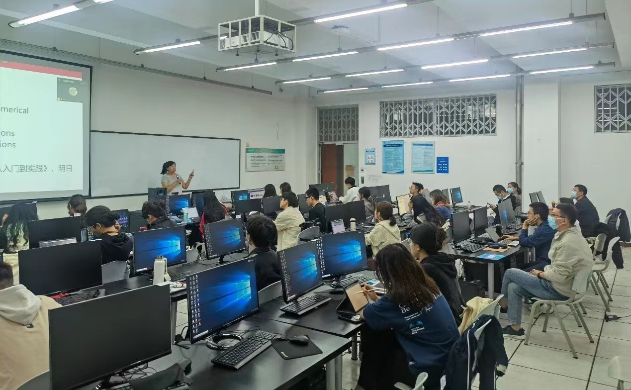 柳林校区I402B教室举行,观摩课程是刘凌教授主讲的数据分析编程(Python)。参加此次观摩的有王宇、王涛、孟丹、徐赟、古永红、谢志龙、王俊、张欢欢、马丹等老师。