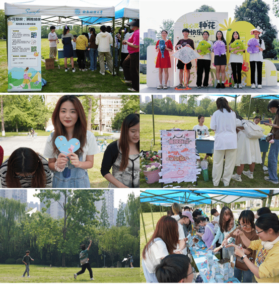 在柳林校区光华门草坪举办了“拥抱健康、心花怒放”趣味心理主题游园会。