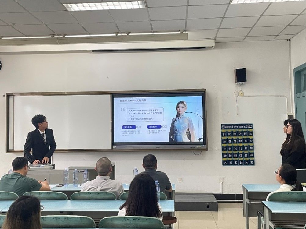 “AI电商团队”的智能助理“AiMi”设计虚拟形象。经过初赛和复赛的激烈角逐,共有6支队伍脱颖而出,晋级总决赛。比赛现场,各队伍展示了他们运用AIGC工具(如Midjourney、Stable Diffusion)为AiMi设计的虚拟形象,并阐述了设计思路、人设设定、如何融入西财场景元素及使用AIGC工具的体会等。唐云峰老师感叹参赛选手用自己的创意和才华呈现了一场精彩纷呈的视觉盛宴,同时也指出同学们在使用AIGC工具创作中的不足之处,鼓励大家进一步提升专业技能,创作出更优秀的作品。