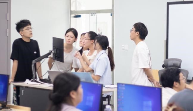的张阳、王浩旻、杨勇剑等青年教师组成专家进行评审。结业仪式期间,各实训小组依次汇报实训项目,就数据处理、算法优化、科研创新、研究结果可视化等方面进行答辩展示。经过三个小时的项目精彩呈现与问答环节,专家评审对各小组的科研能力与工程能力进行综合评定打分。根据打分结果,实训老师们为实训成员颁发奖项。
