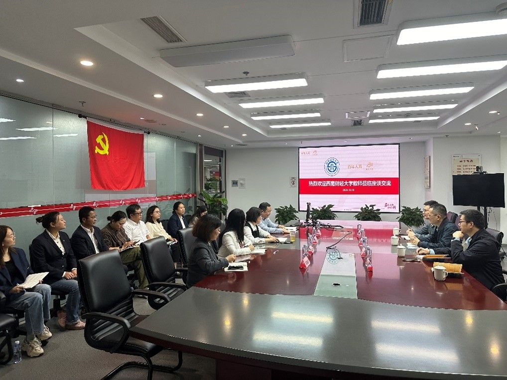 李济民对王宇一行来访表示热烈欢迎,并委托刘钊简要介绍公司文化及发展情况,特别是人才需求、员工培养体系等情况。李济民表示,公司高度重视人才培养,当前正着力构建高素质人才招聘及培养体系构建;西财是西南地区头部财经院校,希望双方持续加强联系、深入探索合作模式,为公司发展招募更多高素质专业人才。