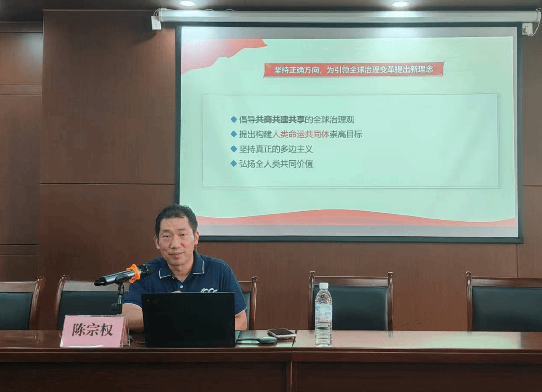 邀请学校党委常委、党委宣传部部长陈宗权教授以《全球治理倡议正逢其时》为全体教职工作专题辅导报告,报告重点解读国际格局演变的趋势,系统阐述了全球治理体系变革的时机和中国推动全球治理体系改革的实践。报告指出,习近平总书记的重要讲话,为高校深化国际合作、服务国家战略提供了根本遵循。禁漫